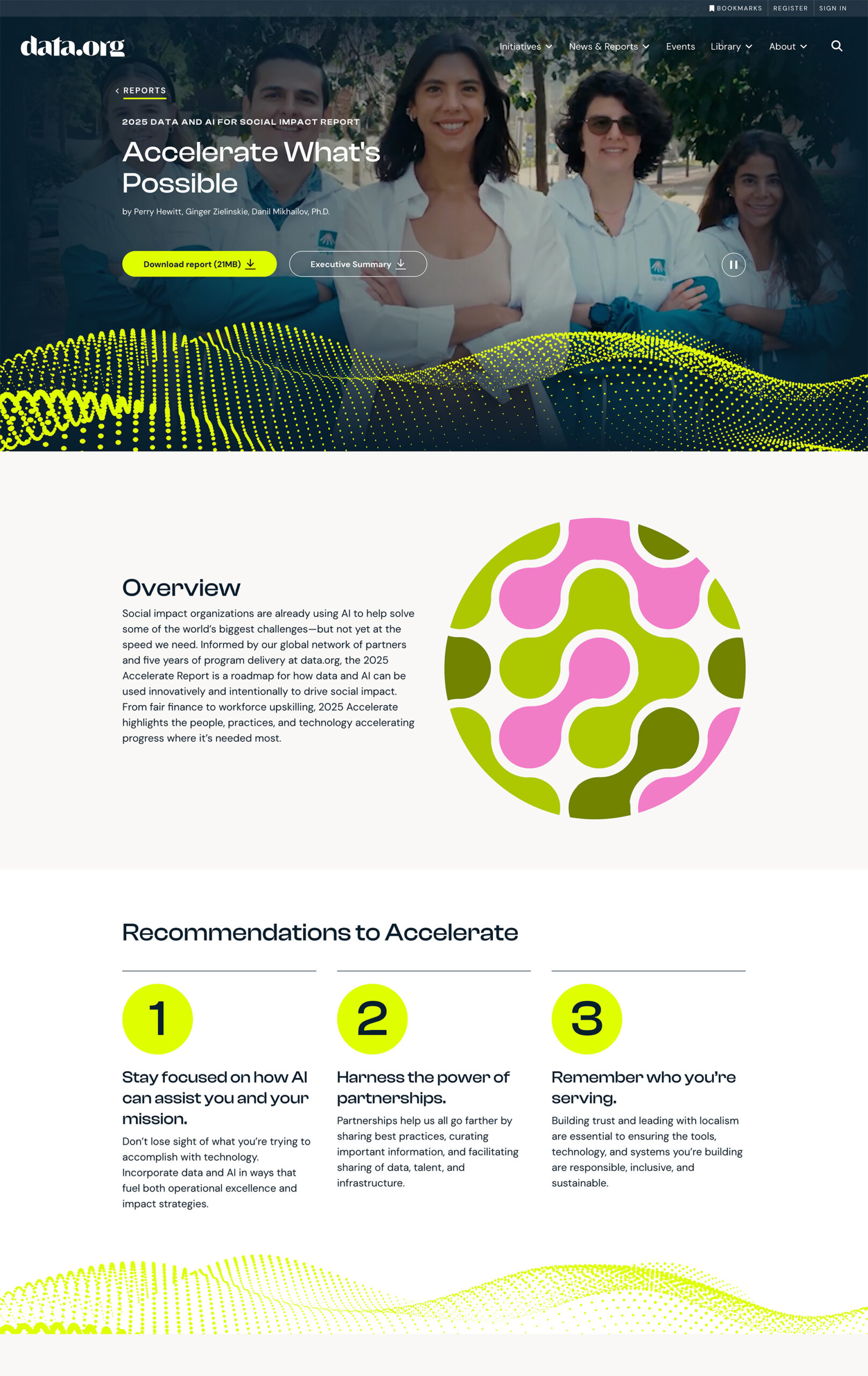 David Mascarina played a pivotal role in shaping the overall brand experience for data.org, bringing cohesion, clarity, and creativity to the organization’s visual and narrative identity. He provided content and product design leadership for the build of the data.org website, the resource library, data and AI for social impact playbooks, and the Data Maturity Assessment tool, where he played a central role in the design and user experience strategy. Alongside technology and data consultants, David led the design and development of dashboards using Google Looker Studio and Google BigQuery.