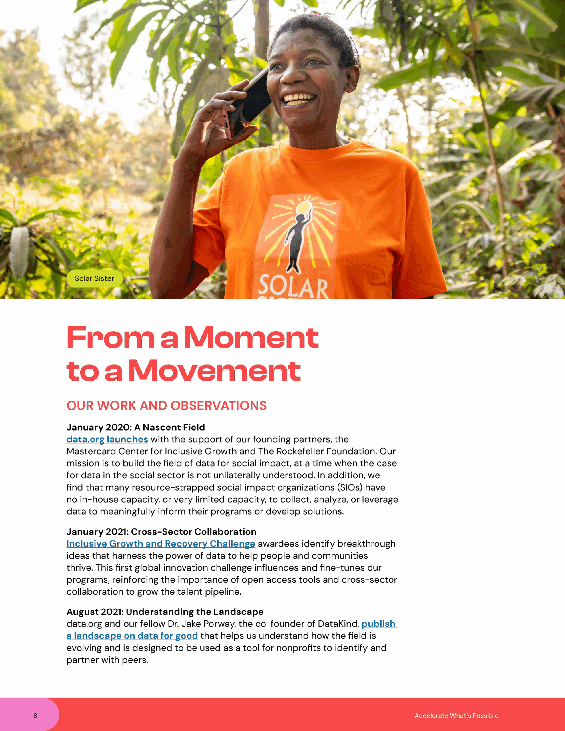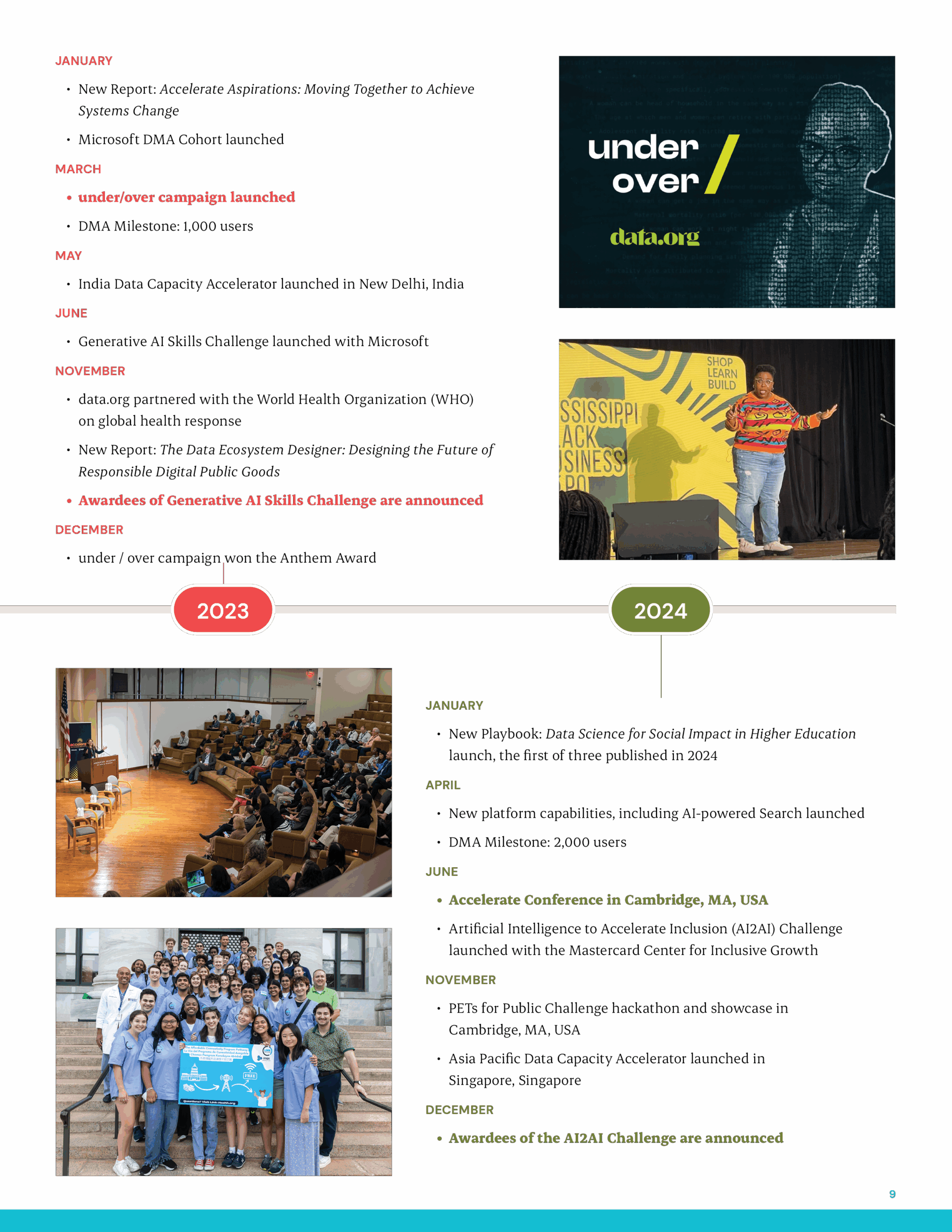 David Mascarina led the design and creative content production of data.org’s Celebrating 5 Years of Impact and the Accelerate What’s Possible reports. These high-profile publications required translating dense research, data, and global insights into storytelling that was both visually compelling and strategically accessible. David oversaw every stage of the process, from conceptual design frameworks to layout systems, infographics, and brand alignment—ensuring that the reports not only communicated information but also inspired action. The result was a suite of publications that elevated data.org’s thought leadership, amplified partner voices, and set a new standard for delivering complex ideas with clarity, creativity, and impact.